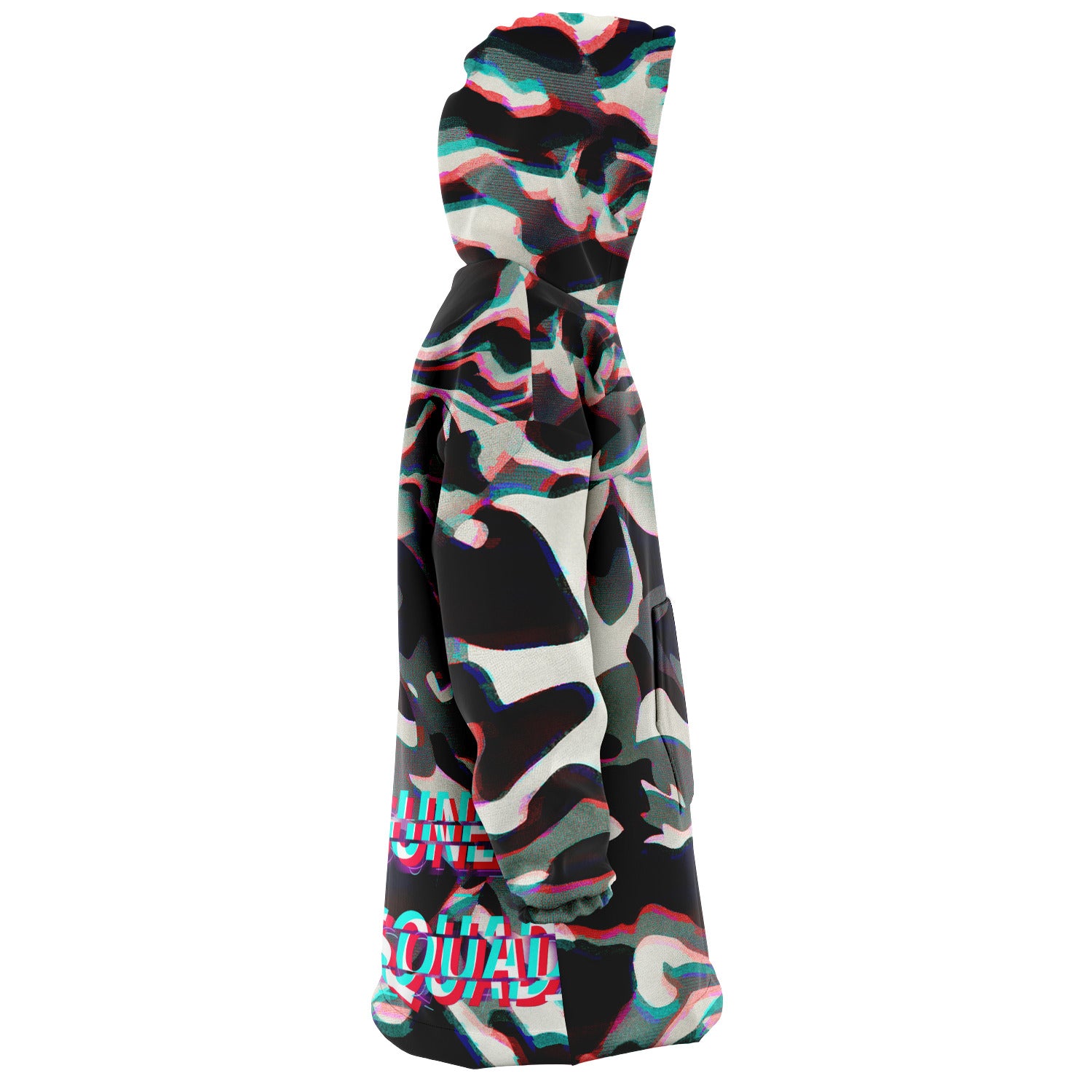 A "Snug Hoodie" is a one-size fits all wearable blanket. This snug hoodie is crafted from an outer silky smooth micro-mink polyester face. And for the inside we have an ultra soft microfiber fleece lining. Each panel is individually printed, cut and sewn to ensure a flawless graphic with no imperfections.