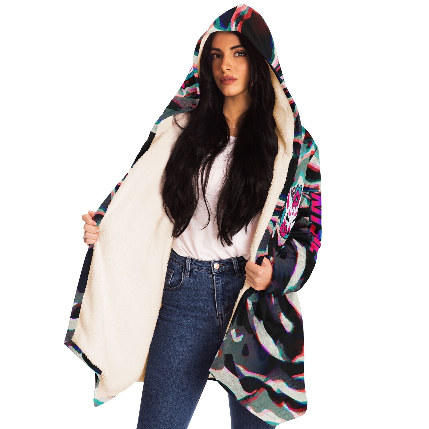 This luxurious cloak is made from an ultra-soft premium microfiber fleece lining. The outside is made with a micro-mink polyester fabric that allows the print to be high definition with vibrant colors. Featuring two deep side pockets to keep your belongings safe and your hands warm. Please utilize our size chart and not order according to habit.